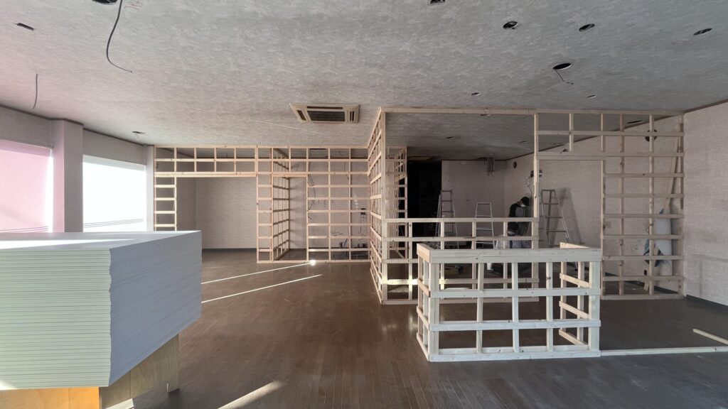 何もない状態から、協力業者さんに力を貸していただきつつ、自分たちの手で少しずつ改装を進めました。